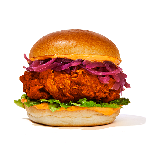 Vegan fillet, lettuce, spicy shake, gochujang mayo, pink pickled onions